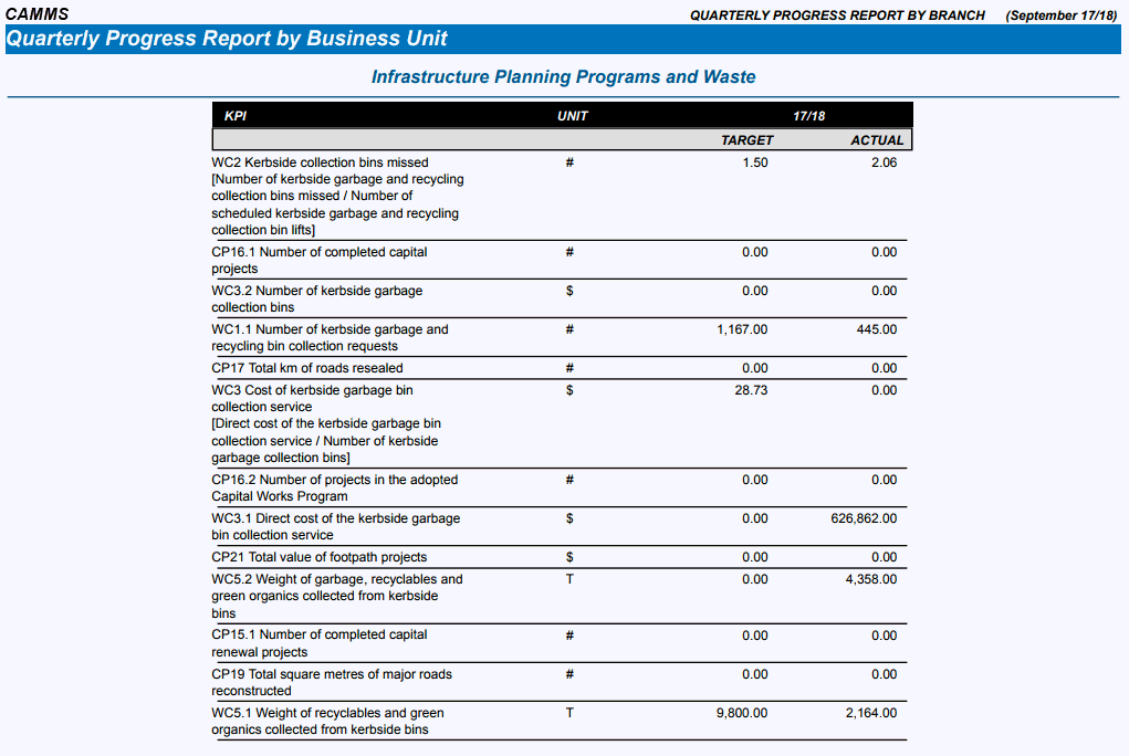 This report is similar to the Quarterly Progress Report, however you can filter by business unit.